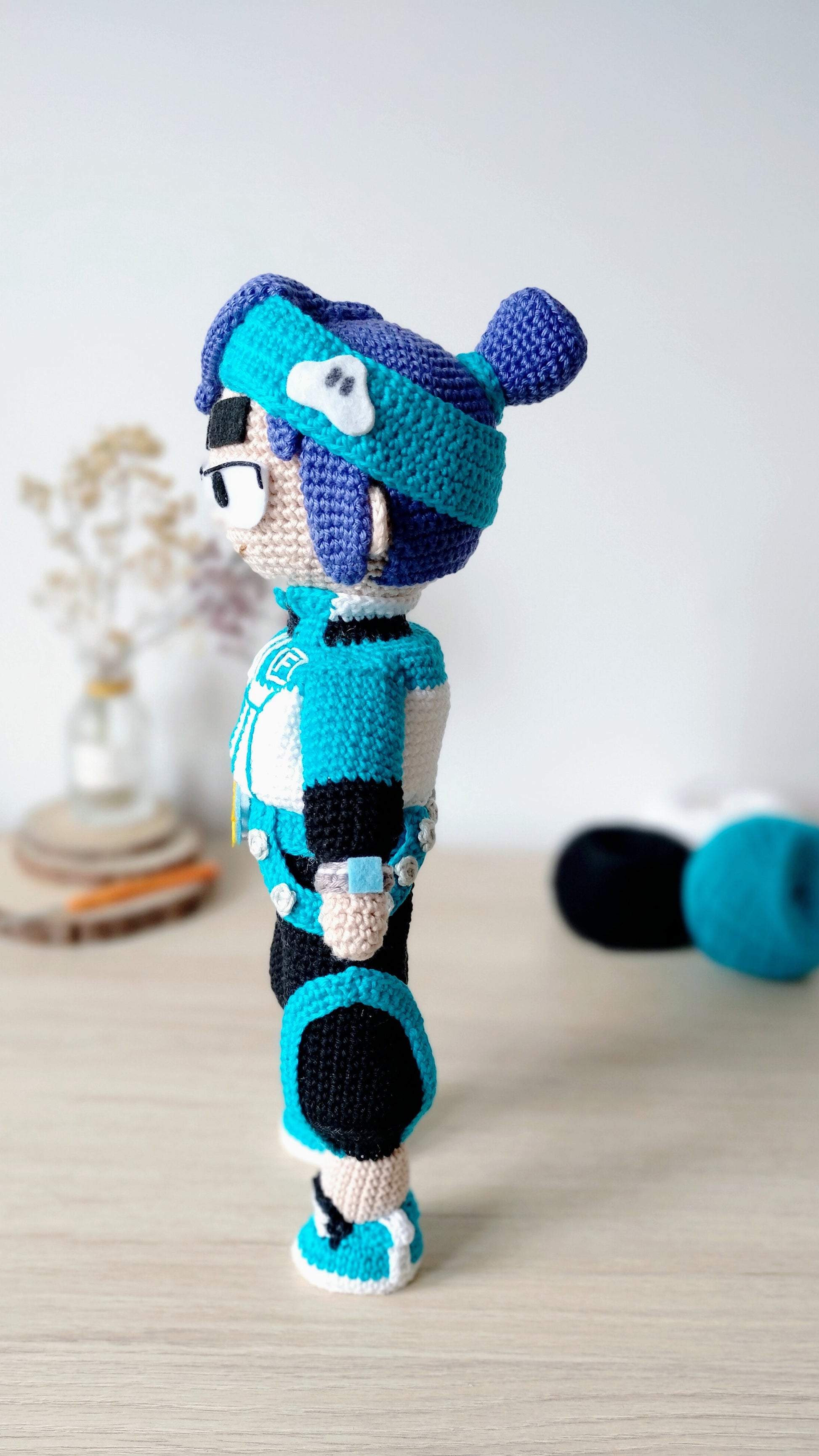Energia, carisma e atitude — esse amigurumi é puro movimento! Inspirado em um artista marcial moderno e cheio de estilo, ele combina ação e simpatia em cada detalhe.